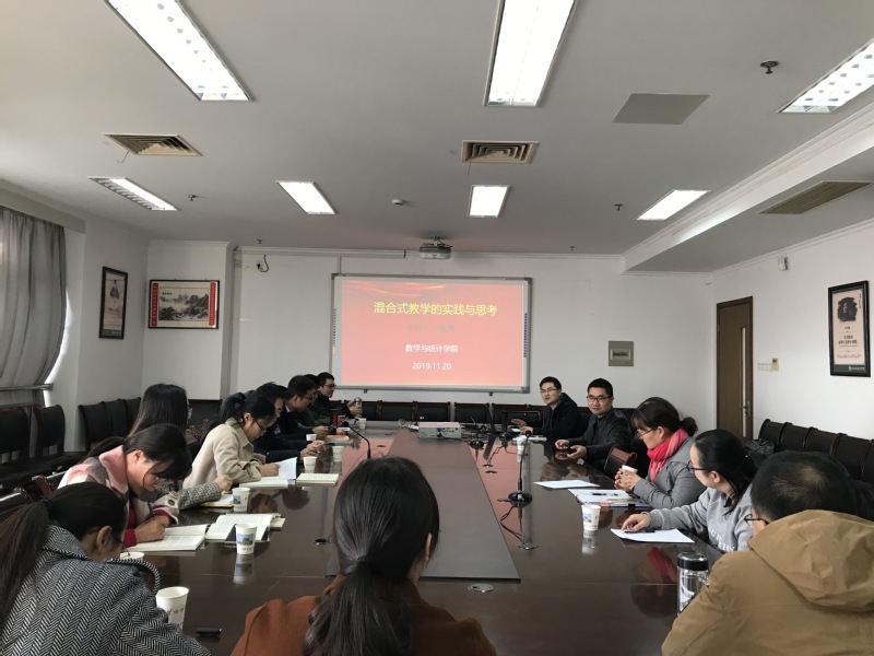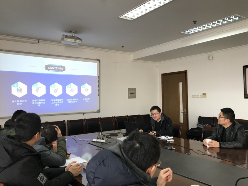 接着,张勇讲解了“线上+线下”的“混合式教学”的基本理念,并结合自己近几年使用《高等代数》SPOC课程和《高等代数选讲》省在线开放课程开展混合式教学的实践,给青年教师们讲解了如何开展适度的混合式教学。张勇认为,青年教师在开课中应注意更新教学理念、突破技术瓶颈。