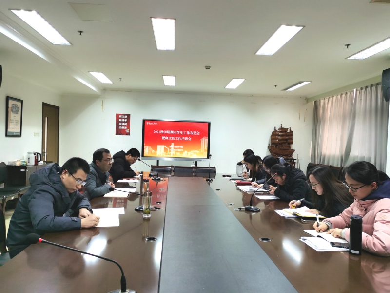 12月22日下午,3044永利在通榆校区主楼八楼会议室召开了2021年秋学期期末员工工作布置会暨班主任工作培训会,公司党委副书记、经理姜海波,党委副书记左飞,辅导员和班主任参加了会议。