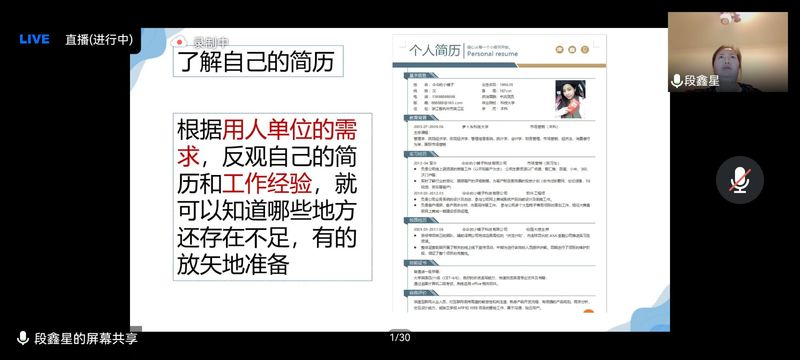 本次讲座以“抗压前行,未来可期”为主题,旨在调适毕业生就业心理。讲座中,段鑫星老师指出,疫情之下的毕业生面对着巨大的就业压力,出现了迷茫、焦虑、“躺平”等各种情绪。她提示毕业生们要远离“三高”“三大”“三不”“三低”,从现实角度出发,认真看待就业形势,脚踏实地、突破自我,实现就业。通过线上的沟通交流,毕业生们认识到只有端正就业态度、树立正确就业观、提升就业技能、抓住每个机会、冲出“舒适圈”,才能从根本上缓解就业压力。