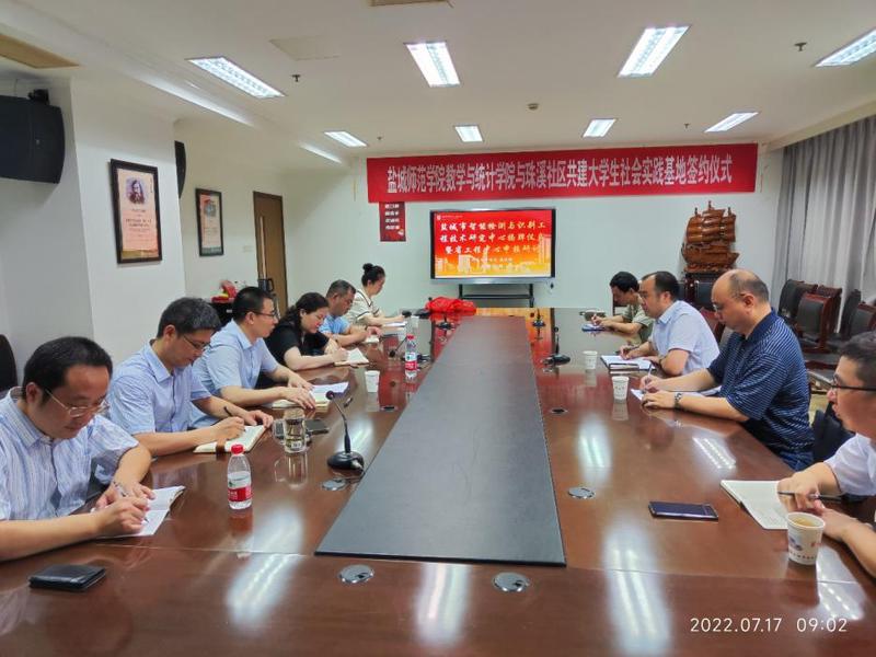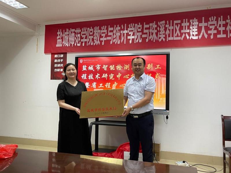 2022年7月17日,“盐城市智能检测与识别工程技术研究中心”揭牌仪式在教学主楼8楼会议室举行。校科技与产业处副处长卢东祥、江苏省工程中心评审专家仇成群教授以及数学与统计公司党委书记接玉芹、经理姜海波、党委副书记左飞、副经理王超、相关专业系主任和部分教师参加活动。会议由姜海波经理主持。