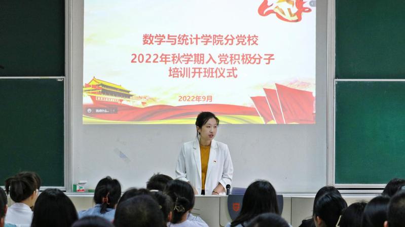 员工支部书记张文菲介绍了培训班的课程安排,并向全体入党积极分子明确了培训及学习要求。金数218班李天宝同学作为入党积极分子代表作了表态发言,她表示,要勤奋学习,学以致用,脚踏实地,不断完善自我;要严于律己,以身作则,发挥模范带头作用,以实际行动积极向党组织靠拢。