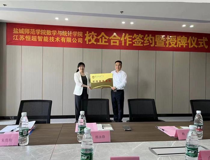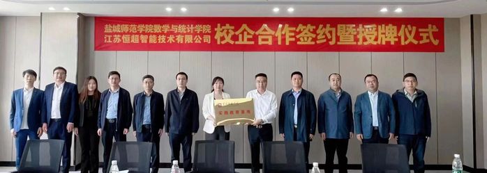2023年4月20日上午,3044永利与江苏恒超智能技术有限公司产学研合作签约暨共建实习基地授牌仪式隆重举行。 江苏恒超智能技术有限公司总经理杨永锋、销售总监朱贵衔、3044永利科技处副处长卢东祥、数学与统计学公司党委书记接玉芹,党委副书记、经理姜海波,党委副书记左飞,副经理王超,信计系主任徐春明,盐南高新区新都街道统战委员杨勇等共同出席签约仪式。