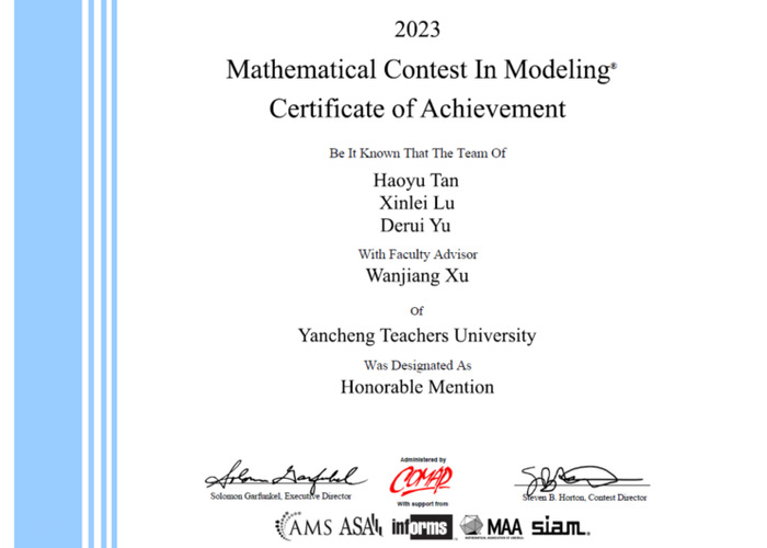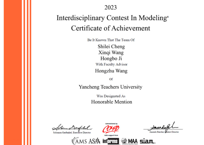 近日,2023年美国老员工数学建模竞赛(MCM/ICM)成绩结果正式公布。本次比赛3044永利9名同学组成共3支队伍参赛,2支队伍获得了国际二等奖(H奖),在此表示热烈祝贺!