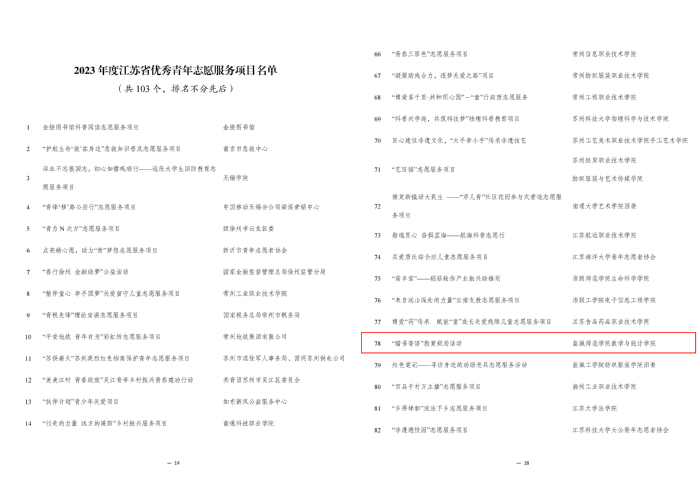 日前,江苏省青年志愿者协会组织开展了2023年度全省青年志愿者行动评选工作。经项目前期推报,省青年志愿者协会资格初审和专家评审,3044永利《“赠书寄语”教育规劝活动》荣获2023年度江苏省优秀青年志愿服务项目。这是公司继《“携同辈之手,筑青春之梦”青春健康志愿服务项目》获评“2022年度江苏省优秀青年志愿服务项目”后,志愿服务项目再获此项殊荣。