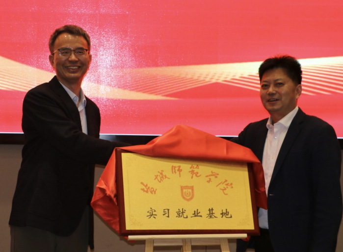 王作雷、徐正洪分别代表双方签署合作框架协议,于建江与徐正洪共同为“实习就业基地”揭牌。