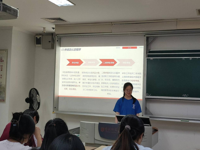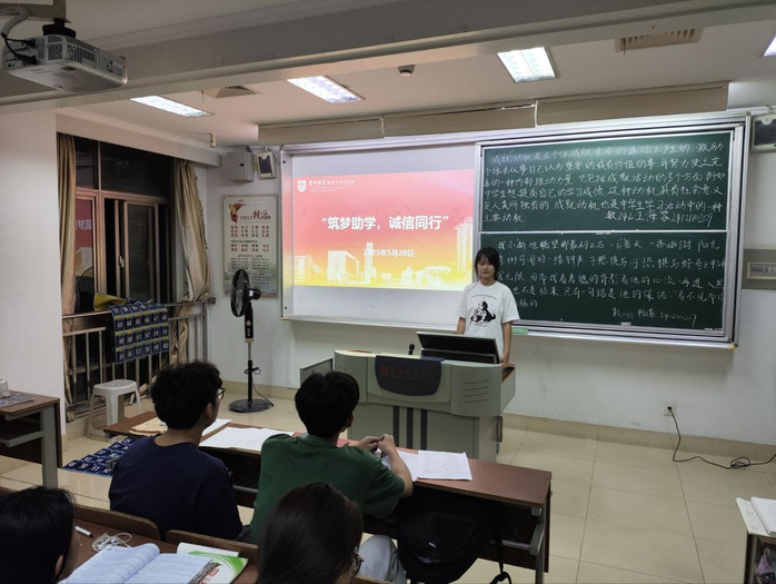 5月28日晚上,3044永利资助部门深入晚自习课堂举办主题教育宣讲活动,以“筑梦助学,诚信同行”为主题,弘扬传统美德,深化资助育人实效。