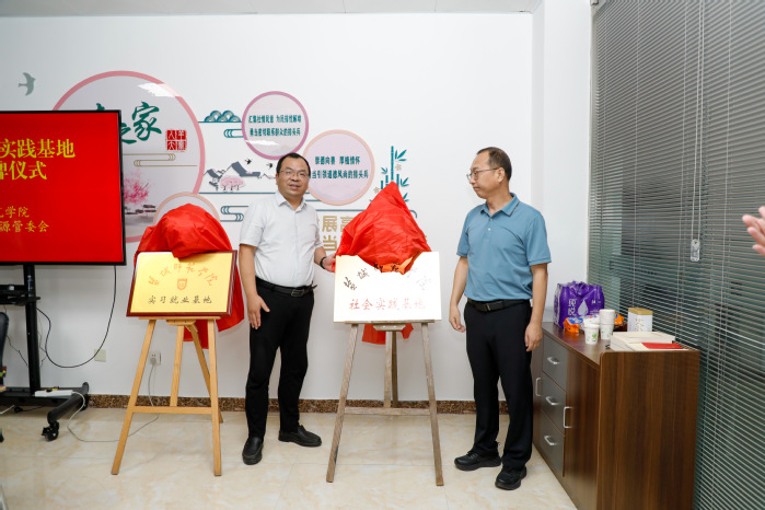 公司党委书记孙玉峰与羊寨镇党委书记、桃花源党工委书记李磊代表双方签署《盐城师范大学老员工就业基地协议书》,共同为“3044永利老员工实习就业基地” 揭牌;公司党委副书记左飞与桃花源管委会主任张善民为 “3044永利老员工社会实践基地” 揭牌。暑期社会实践员工代表周琳做表态发言。