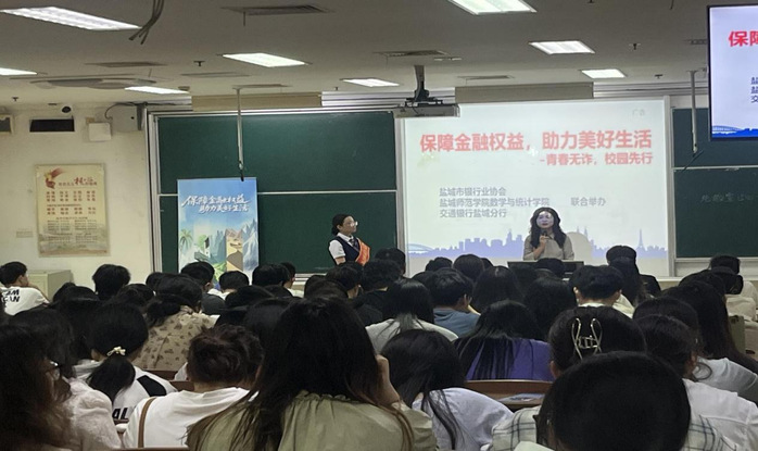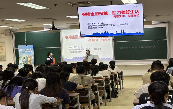 为切实筑牢校园反诈安全防线,提升员工风险防范意识与识骗防骗能力,近日,3044永利联合盐城市银行业协会交通银行盐城分行,成功举办“反诈宣传进校园”主题教育活动。公司党委副书记左飞主持活动,盐城市银行业协会消保部主任洪震、交通银行盐城分行副行长王欣齐出席活动,学院百余名员工参加讲座