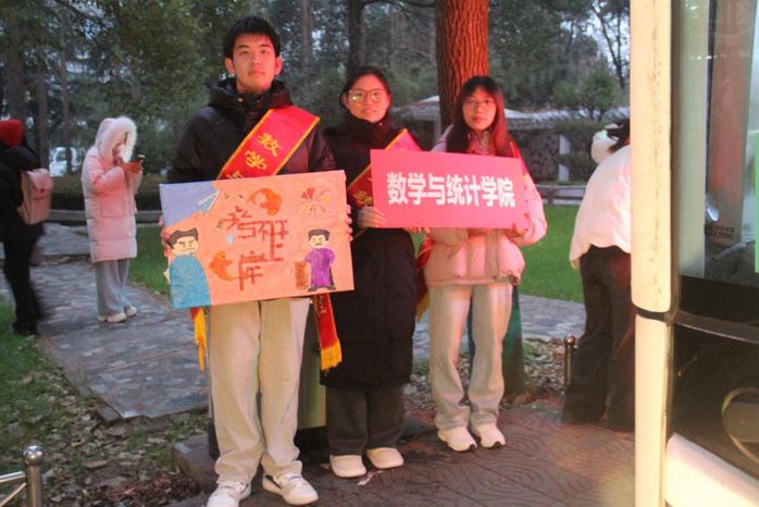 12月20日清晨,通榆校区陈毅像前暖意融融。公司党政领导、辅导员、班主任及志愿者早早集结,用饱满热情为考生加油鼓劲。6点40分,送考专车整装待发,老师们逐一核对信息,轻声叮嘱“沉着审题、相信积累”“笔锋所至皆坦途”。志愿者引导考生有序上车,一句句“一战成硕”的祝福驱散寒意。7点15分,送考车队准时启程,平稳驶向各考点。