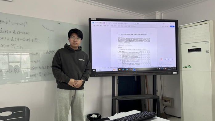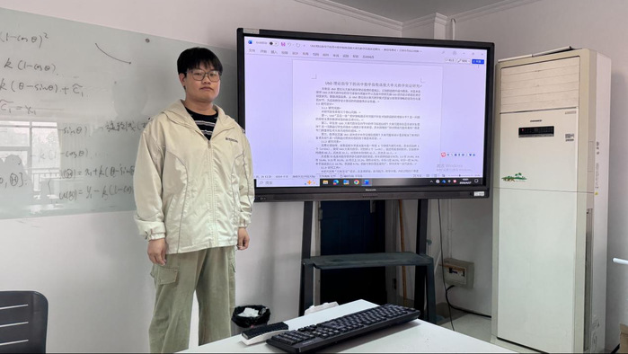 汇报环节中,八位同学围绕初中生函数性质理解与抽象思维、模型观念导向的初中一元二次方程进阶式教学设计、UbD理论指导下的高中数学指数函数大单元教学、初中数学几何教学、基于SOLO分类理论的数列递推公式教学进阶设计、高中生数学直观想象素养等方向,分享了各自调查问卷的模拟测试与结果分析。